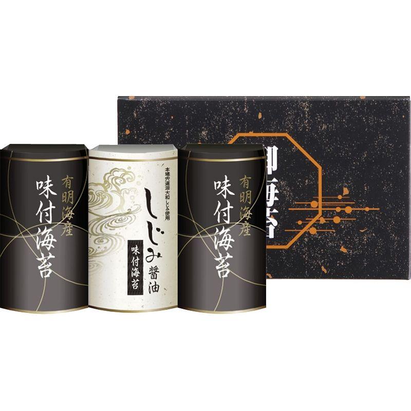 • 商品内容:有明海産味付海苔(8切8枚×3袋)×2、しじみ醤油味付海苔(8切8枚×3袋)×1