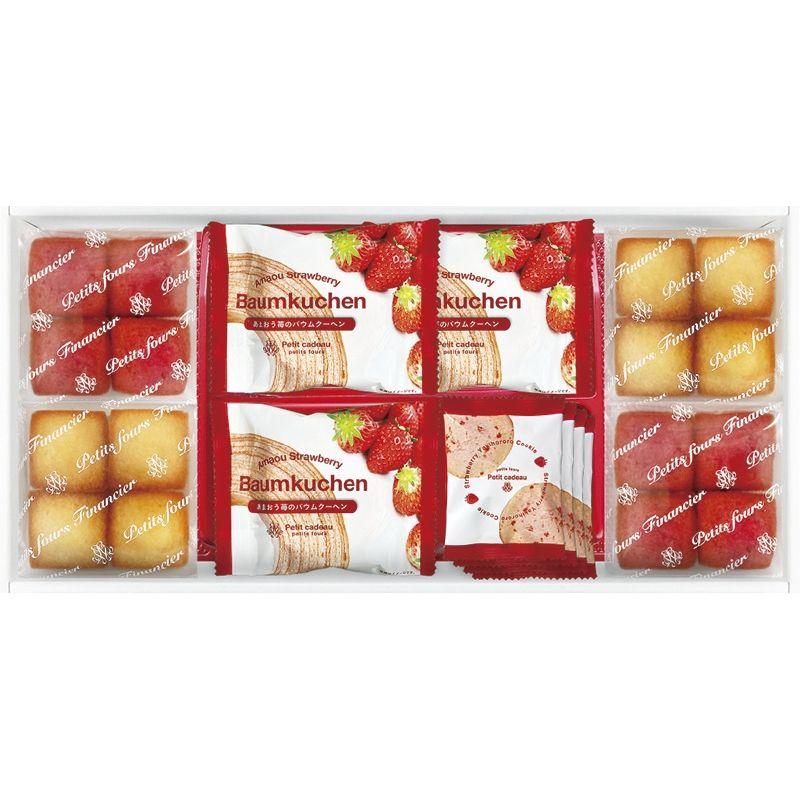• 商品内容:焼きほろろクッキー(イチゴ)×4、あまおう苺バウムクーヘン×3、プチフィナンシェ(あまおう苺・プレーン)(各4個入)×各2