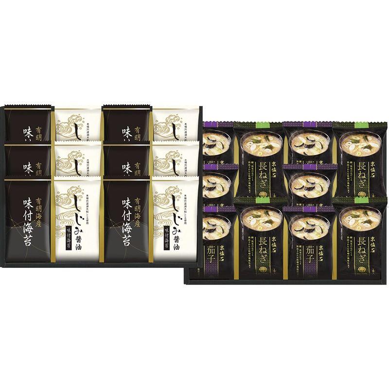 • 商品内容:有明海産味付海苔・しじみ醤油味付海苔(各8切8枚)・マルコメ京懐石茄子のおみそ汁(11.5g)×各6、マルコメ京懐石長ねぎのおみそ汁(15.7g)×4