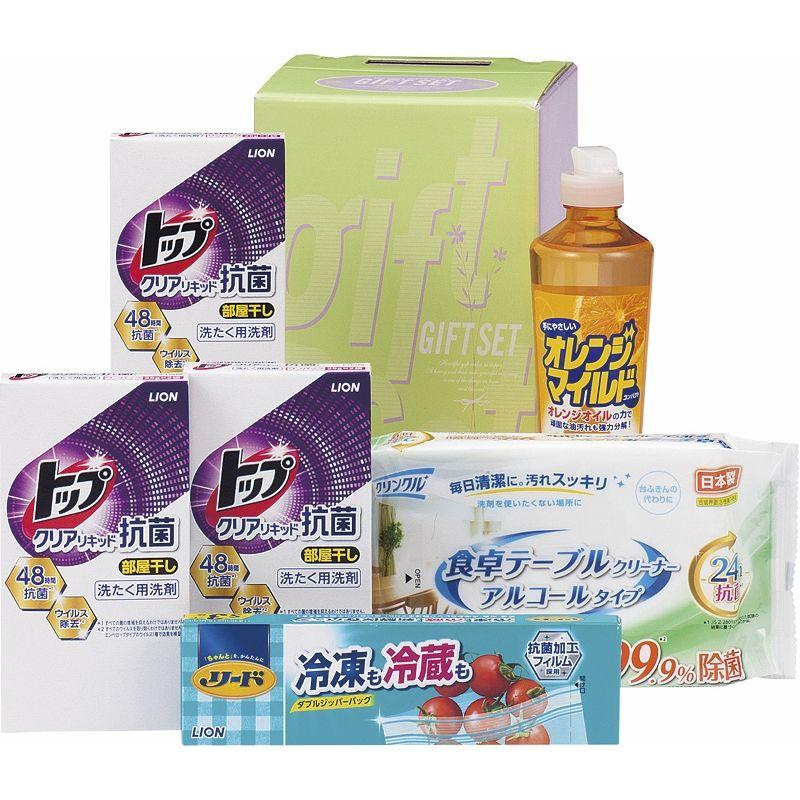 • 商品内容:ライオントップクリアリキッド抗菌(25g×2袋)×3、オレンジマイルドコンパクト(270ml)・ライオンリード冷凍も冷蔵も新鮮保存バッグ(タイ)(S3枚)・クリンクル食卓テーブルふきん(30枚入)×各1