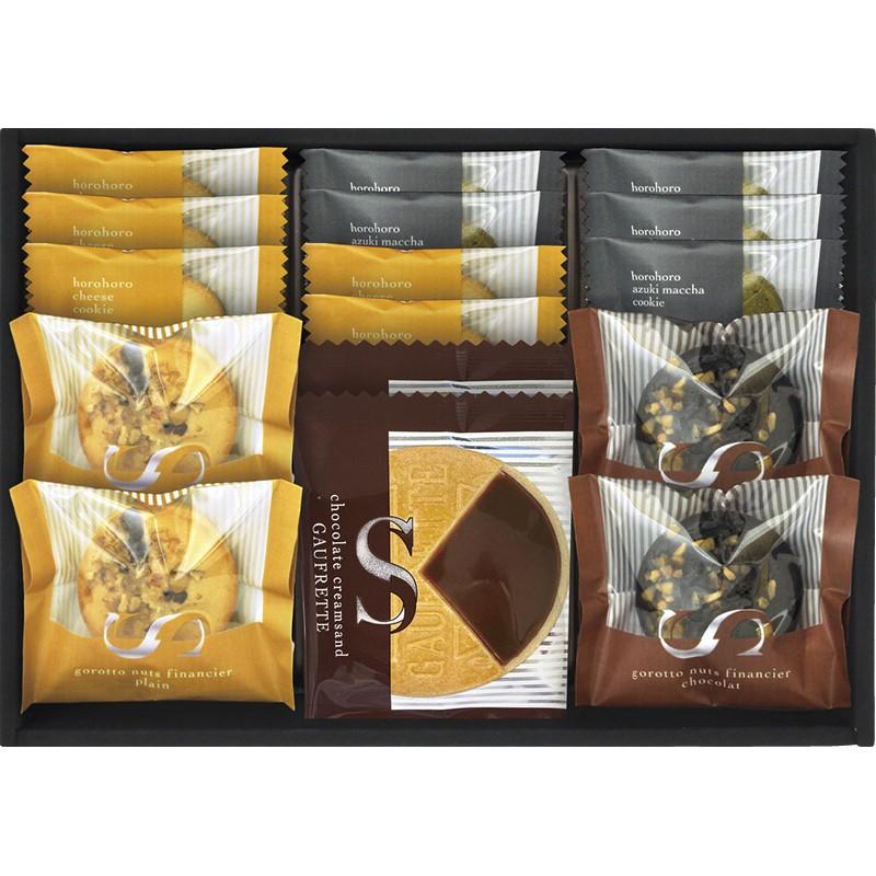 - 商品内容:ほろほろクッキー(チーズ・抹茶)×各5、ごろっとナッツフィナンシェ(バニラ・ショコラ)・ゴーフレット(チョコ)×各2