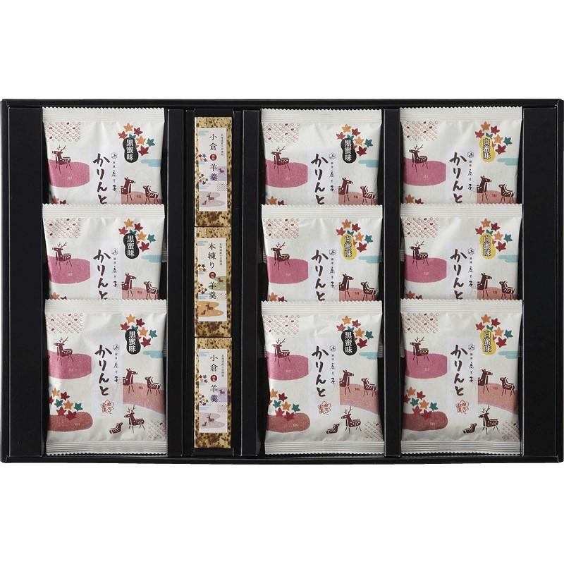• 商品内容:黒蜜かりんとう(10g)×5、白蜜かりんとう(10g)×4、羊羹(小倉)(50g)×2、羊羹(本練)(50g)×1
