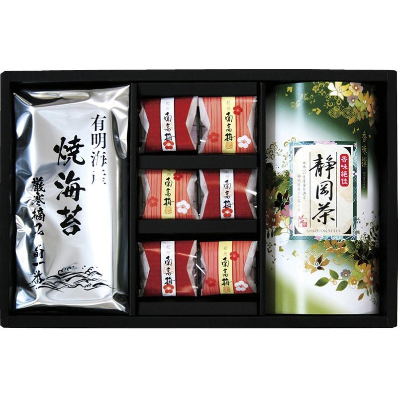 • 商品内容:紀州南高梅×6、静岡茶(50g)・有明海産焼海苔(3切5枚×2袋)×各1