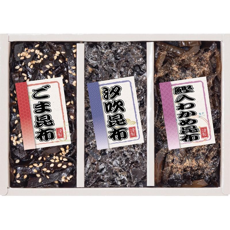 • 商品内容:ごま昆布・鰹入わかめ昆布(各40g)・汐吹昆布(15g)×各1