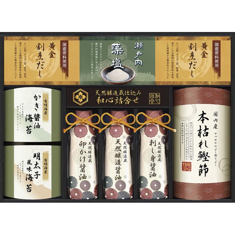 • 商品内容:黄金割烹だしパック(8g×2袋)×2、天然醸造蔵仕込み(卵かけ醤油・刺し身醤油・天然醸造醤油)(各200ml)・瀬戸内藻塩(50g)・本枯れ鰹節(15g)・有明海産(牡蠣醤油海苔・明太子風味海苔)(各8切8枚)×各1