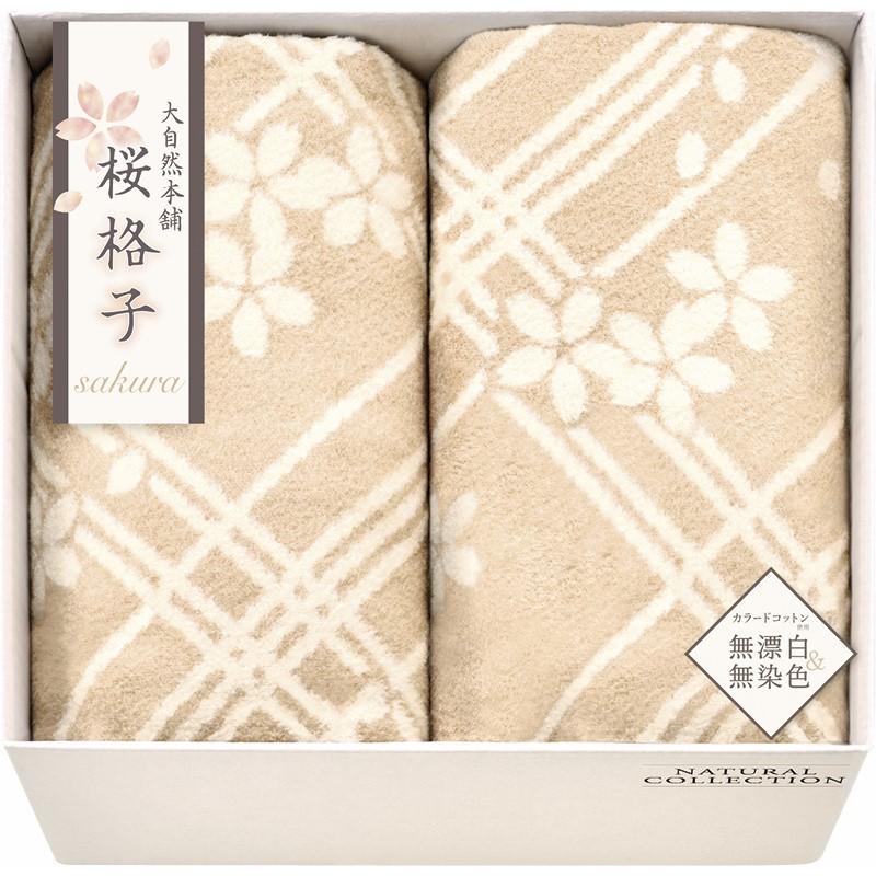 • 大自然本舗〜桜格子〜 肌にやさしい自然色のシルク入り綿毛布(毛羽部分)2P SBN85300