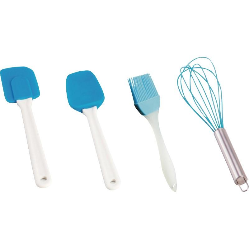 スパチュラ、スプーンスパチュラ、ハケ、泡立ての便利な4点セットです。