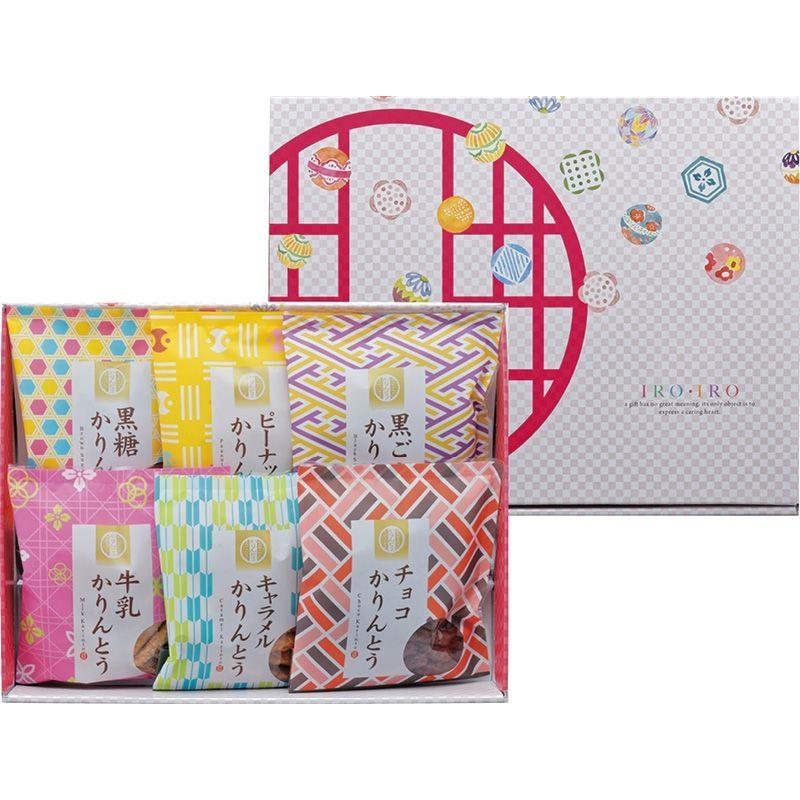 • 商品内容:黒ごまかりんとう・黒糖かりんとう・牛乳かりんとう・ピーナッツかりんとう・チョコかりんとう・キャラメルかりんとう(各45g)×各1