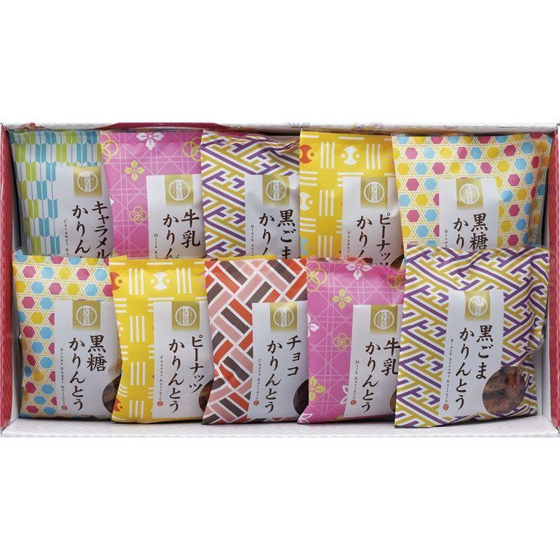 • 商品内容:黒ごまかりんとう・黒糖かりんとう・牛乳かりんとう・ピーナッツかりんとう(各45g)×各2、チョコかりんとう・キャラメルかりんとう(各45g)×各1